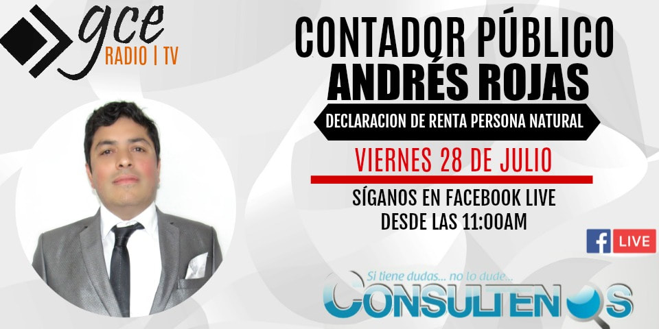Banner Andrés Mauricio Rojas Diaz, special guest, Consult us, talks about the Declaration of Income for Natural Persons